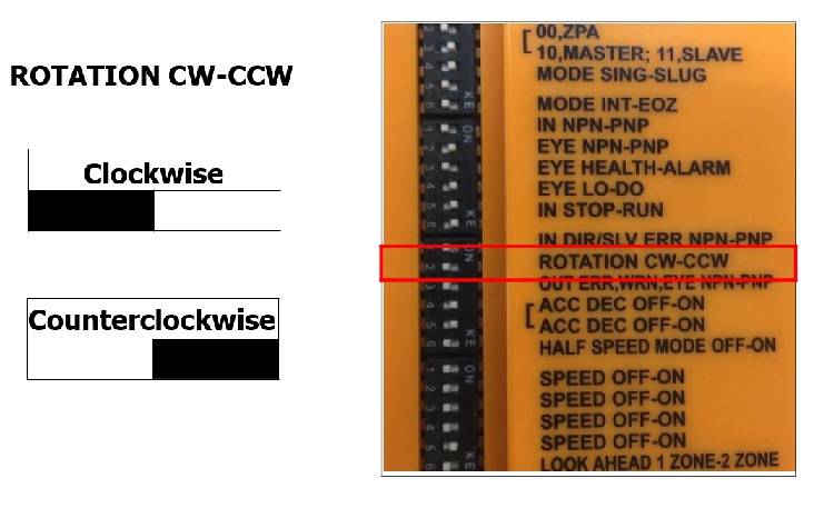 - A User can adjust the rotation by DIP switch on the control card or external controller.